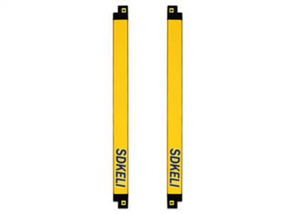 产品介绍:KS06型安全光栅专为人身安全防护而设计,产品符合GB/T 19436.1、GB/T19436.2及GB4584-2007的要求。具有安全性高、外观纤小、无探测盲区、检测精度高(最高14mm,可用于手指保护)等特点。适用于自动化领域及危险机械加工现场的人身安全防护。KS06M型安全光栅可对3m、6m、9m等不同距离的危险区域提供防护,用户可根据实际台面选择合适的光栅规格。KS06M型安全光栅提供两路PNP或NPN控制信号,当用户现场需要继电器信号进行控制时,可配合CSRMB型安全继电器模块使用。