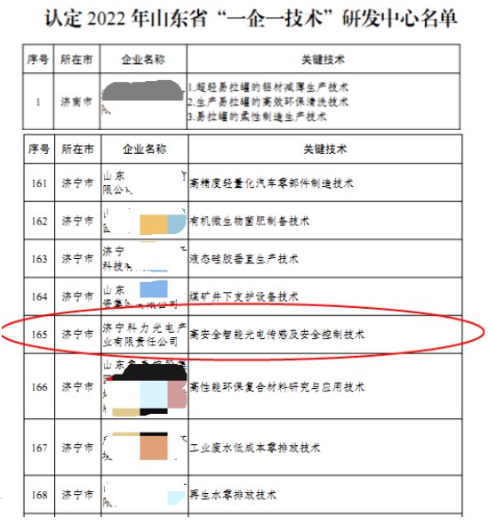 为持续提高创新能力,提升企业产品实力和核心竞争力,根据《山东省工业企业“一企一技术”研发中心培育认定工作指南》有关要求,经企业申报、有关部门推荐、专家论证等程序,认定济宁科力光电产业有限责任公司研发机构为2022年山东省“一企一技术”研发中心