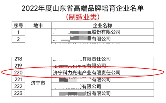 【喜报】科力光电入选 2022年度山东省高端品牌培育企业