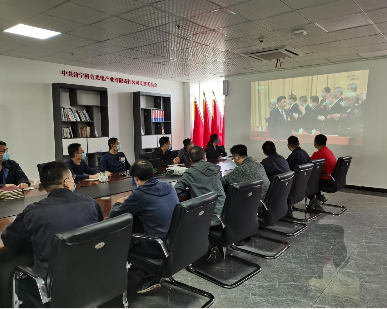 科力光电产业有限责任公司党支部组织全体党员、干部集中收听收看党的二十大开幕盛况。